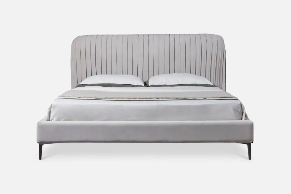 With its rounded shape and pleated detailing, LYLI brings softness and modern style to the bedroom. The generously padded headboard offers exceptional comfort, while slim side rails create a clean, contemporary silhouette. Solid wooden slats provide lasting support and promote airflow for a healthier sleep environment.