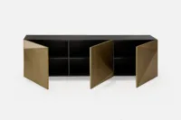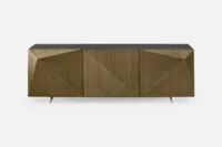 The ASPETTI II 3-door buffet has asymmetric 3D triangulated doors that reflect light and cast shadows in a unique way. Not only is it a statement piece, but also a great storage option with its shelved interior.