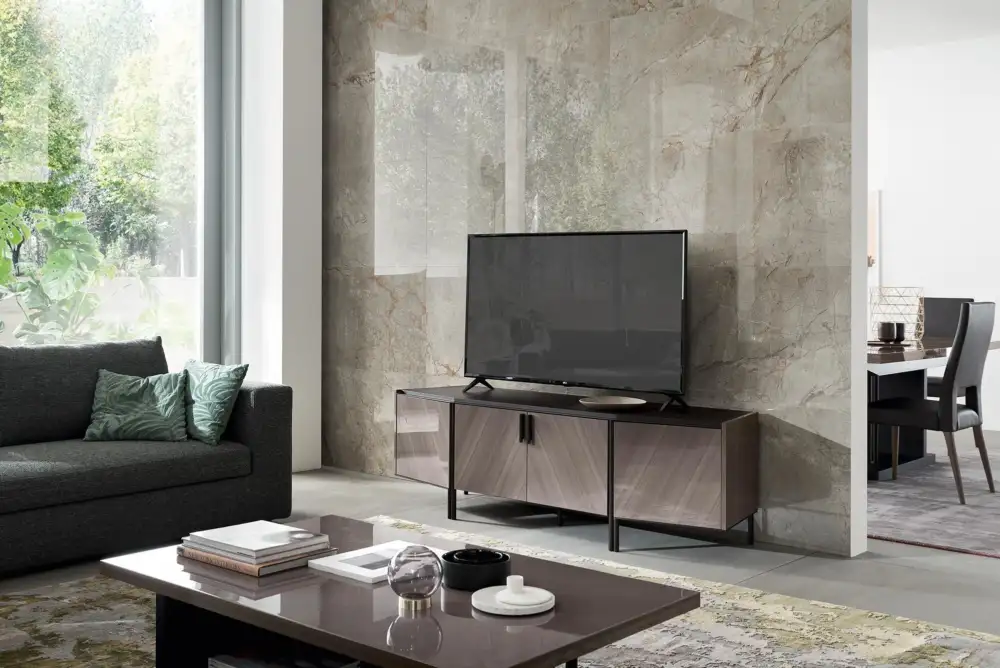 The combination of forms of the Olimpia range creates high quality beautiful spaces designed by Italian powerhouse Alf Italia. Finished with clean lines in mind with Mahogany timber and painted finishes, the Olimpia TV Unit comes in a high gloss finish and is available in a range of products for the living room.