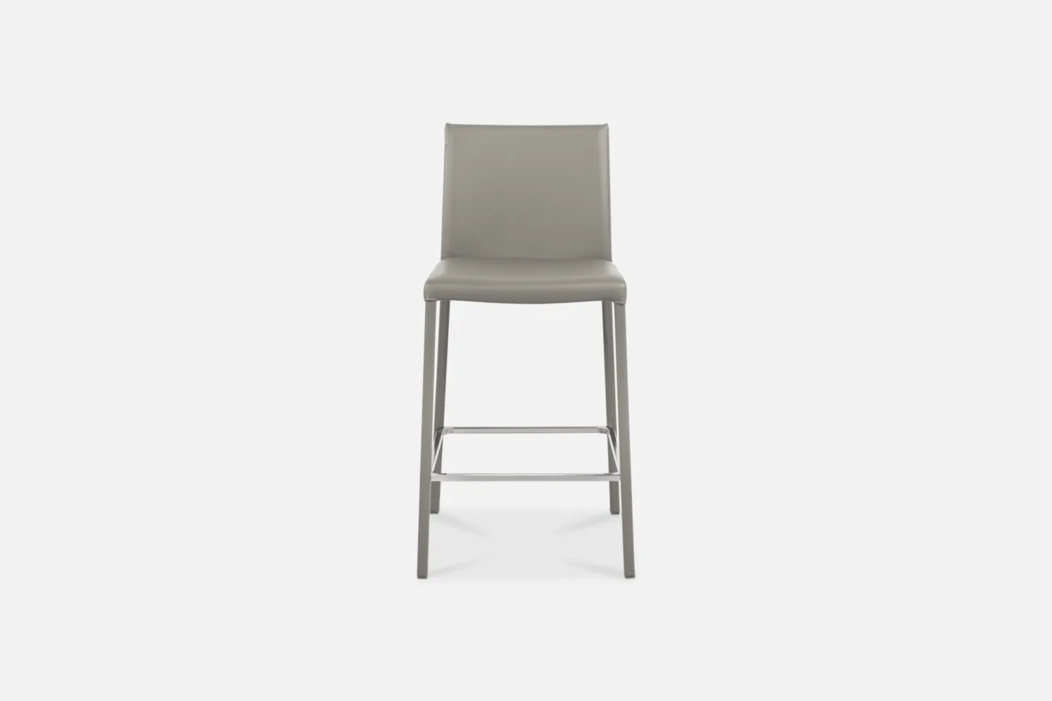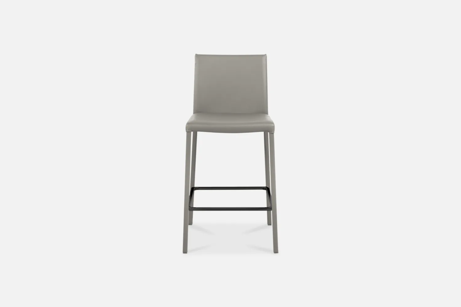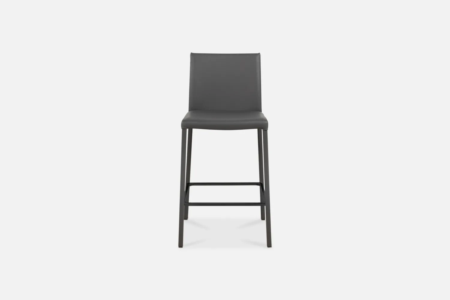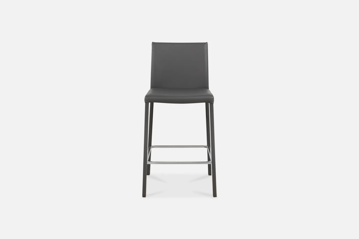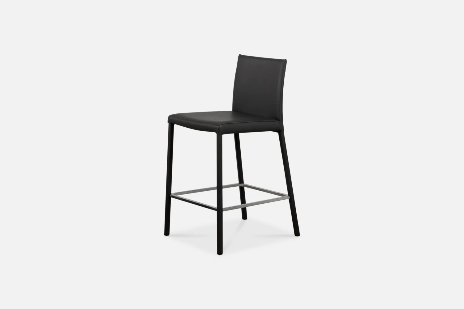 The Marconi leather barstool is fully upholstered, making it an easy piece to mix in with different countertops and furniture items. A mid-height seat back provides comfort, while the simple style is timeless and sleek.