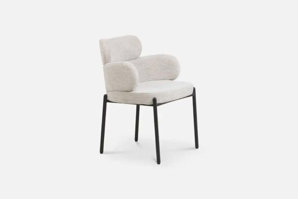 With a name that says it all, DREAM is for moments you never want to end. With its cloud-like curves and cushy arms, it’s the perfect perch for long lunches, family dinners, or board games that go well into the evening. Balanced on slim black legs and wrapped in textured fabric, DREAM brings comfort, character, and a little fun to any table.