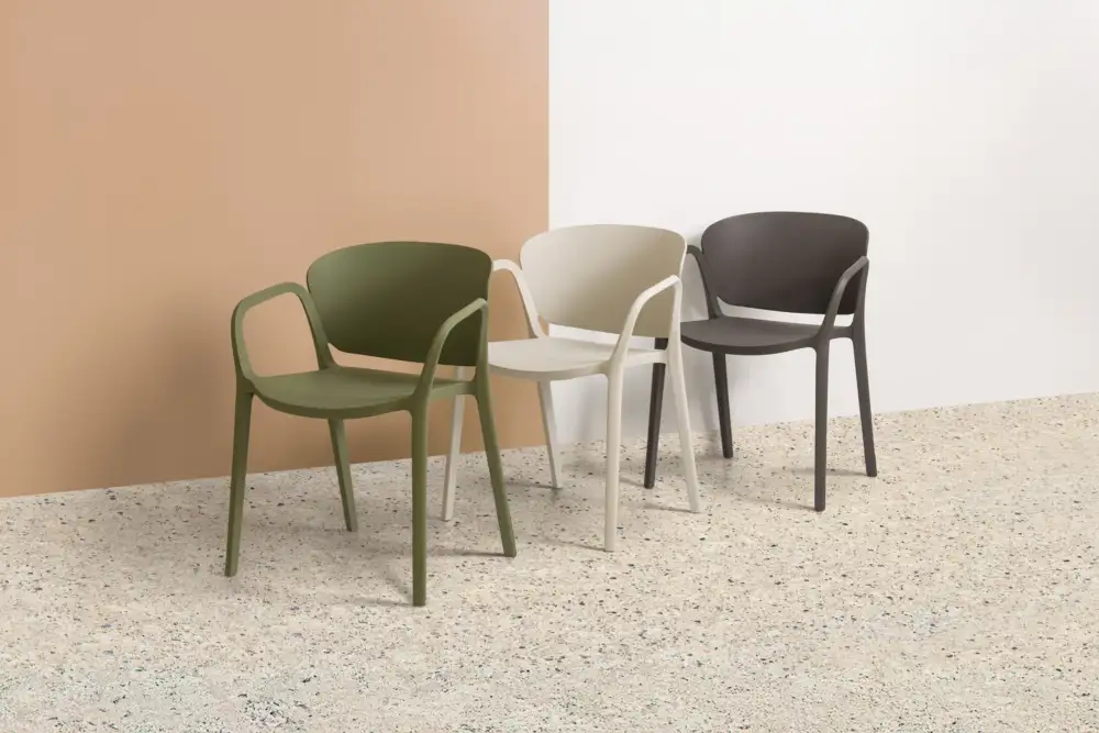 Sculptural yet easygoing, MANNAR is made for relaxed residential living. Crafted from 50% recycled plastic, it’s lightweight, stackable and UV-safe, making it ideal for sunny decks, shady patios or as that extra chair you always need when friends drop by