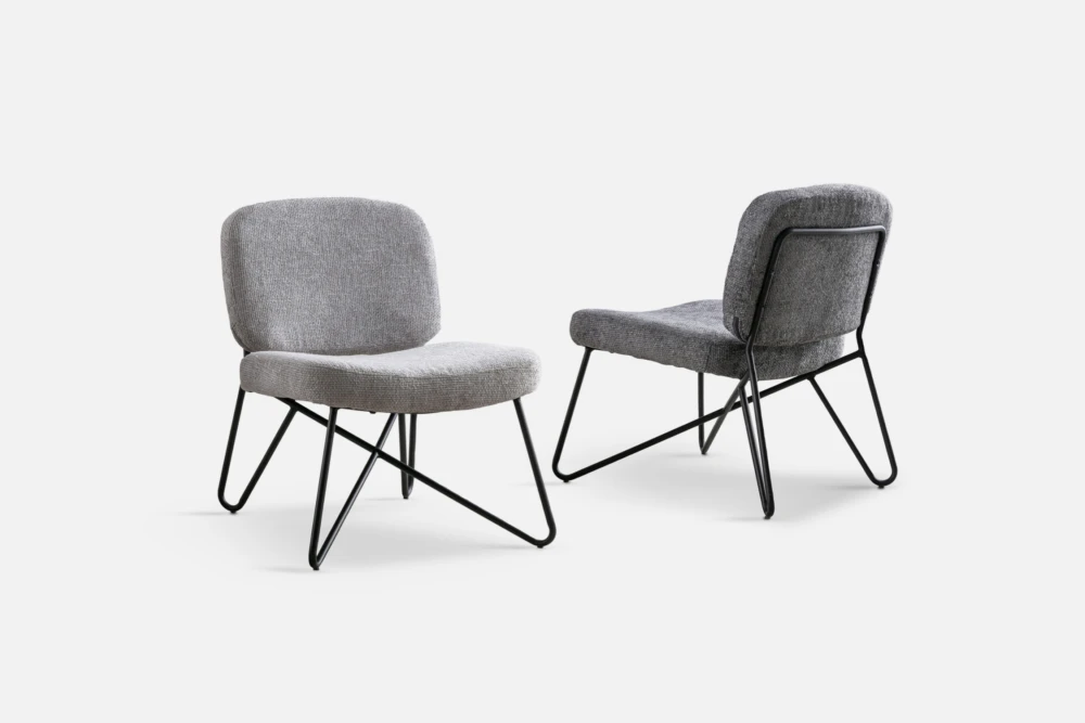PIZA Accent-Chair in Silver Fabric with Black Metal Legs