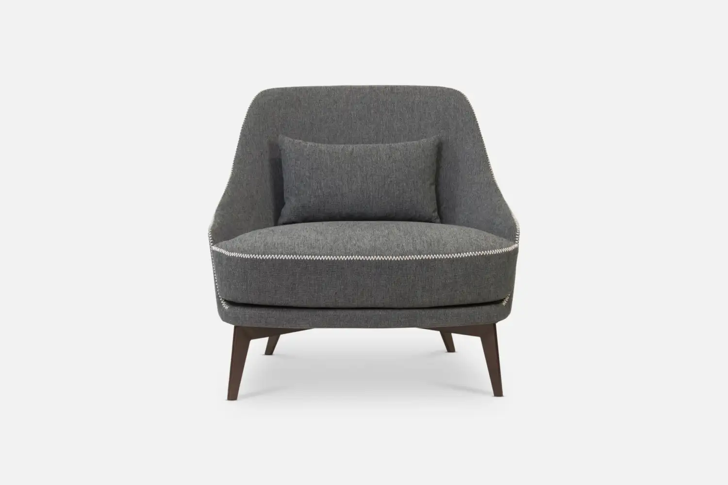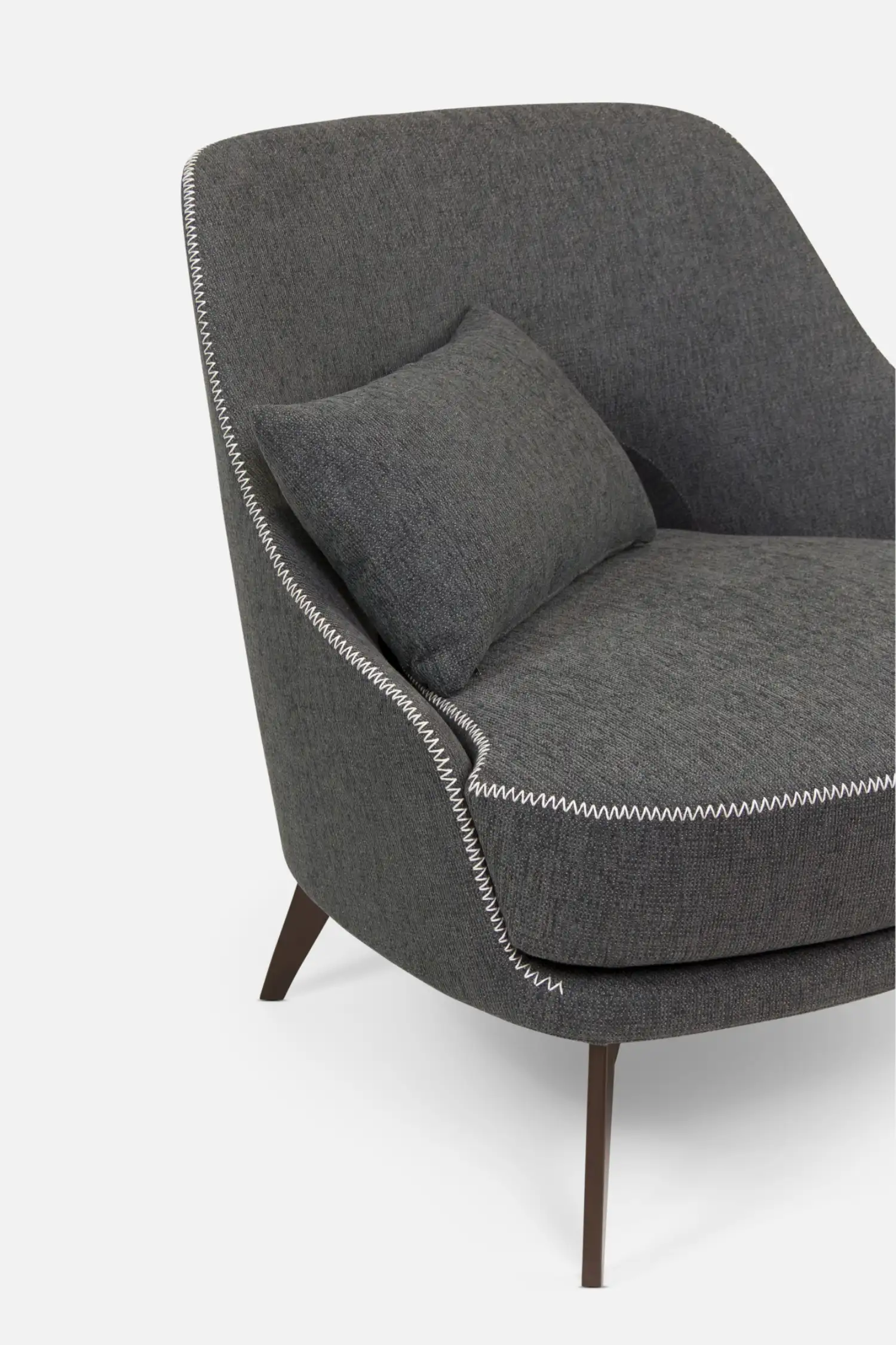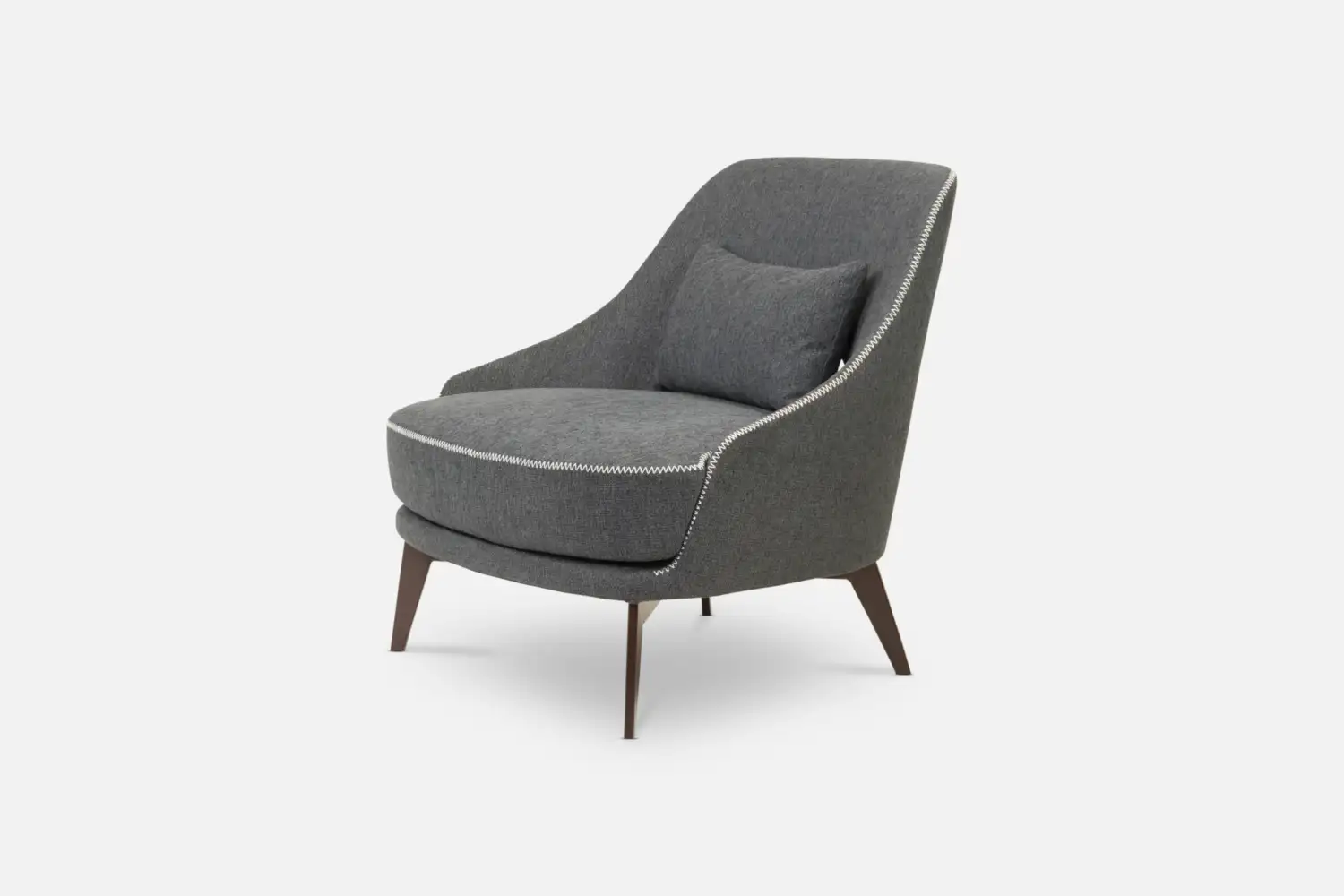 MCCARTNEY Accent-Chair with Cushion in Dark Grey Fabric with Beige Stitching and Brown Legs