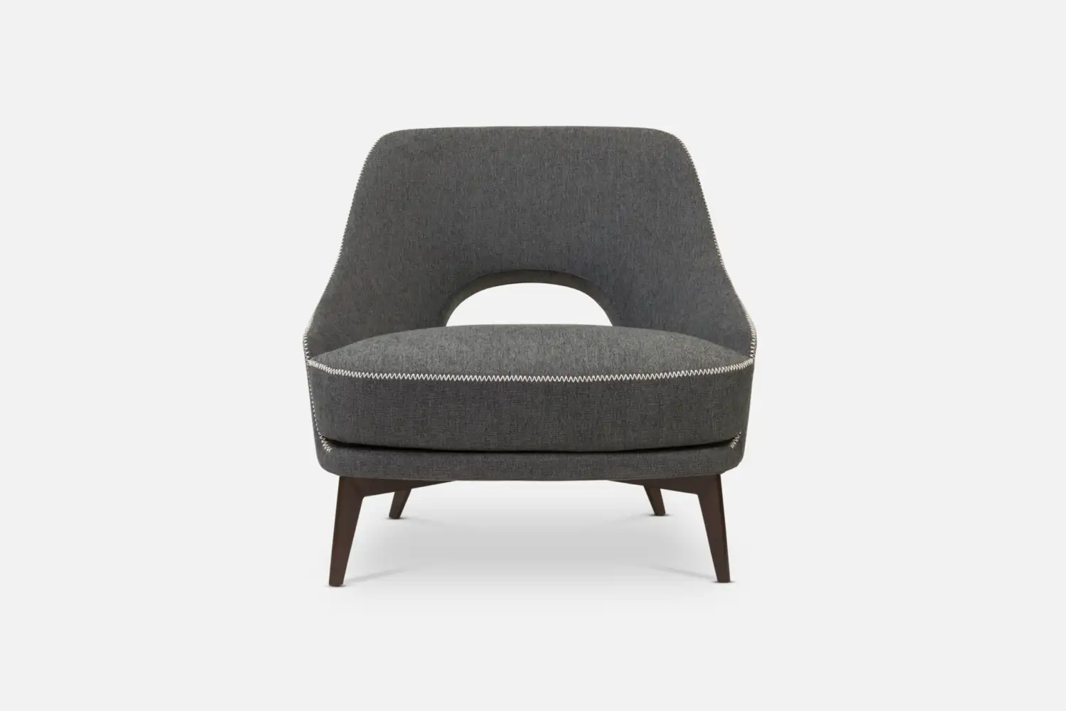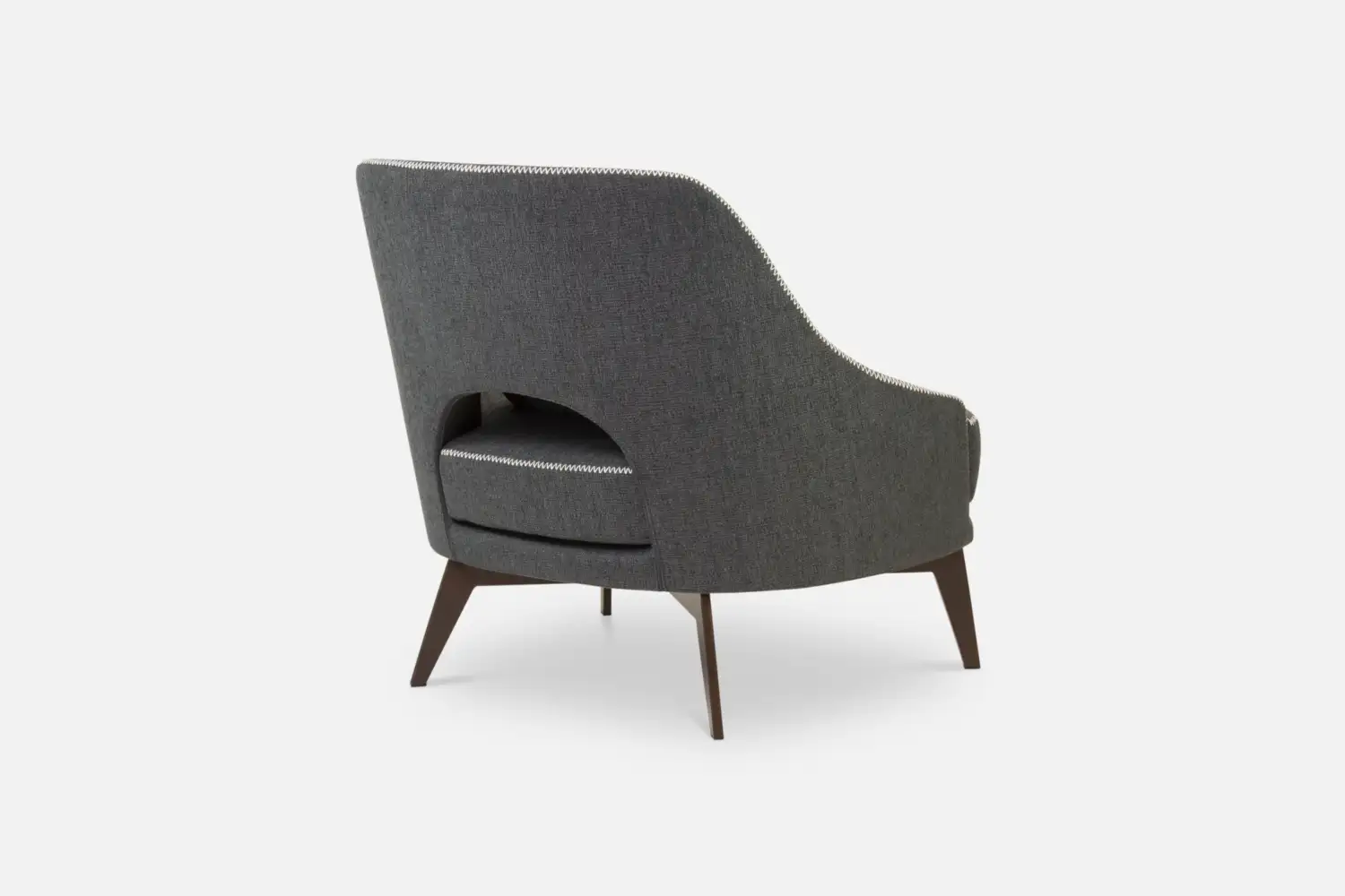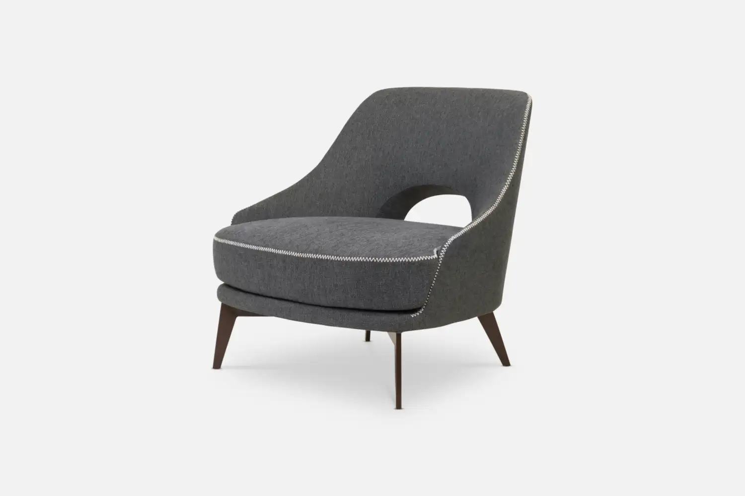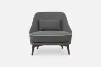 MCCARTNEY Accent-Chair with Cushion in Dark Grey Fabric with Beige Stitching and Brown Legs