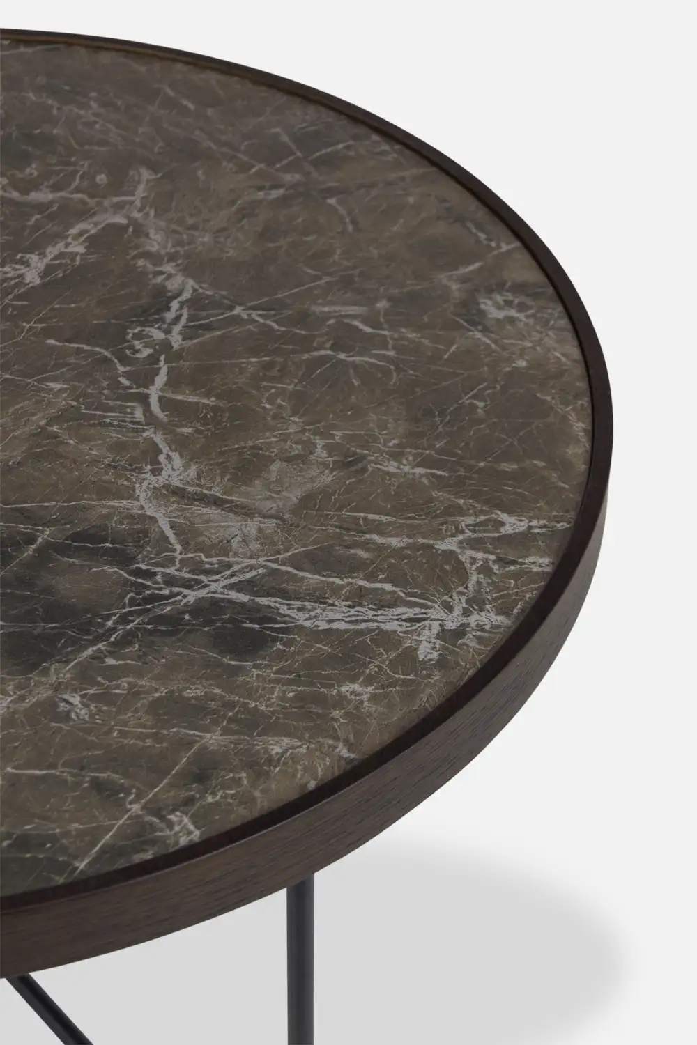 A modern trio that complements any living space. Linked by a sleek black metal base, each table showcases a unique material top: warm brown oak, sophisticated matt black glass, and luxurious emperador marble. Use them together as a stylish nesting set or individually as statement pieces.