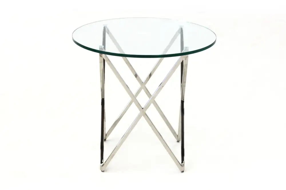 CROWN Side Table Round Clear Glass/Brushed Stainless Steel