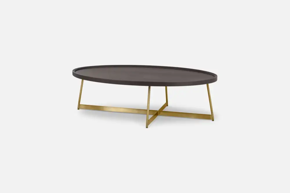 ONDATA Coffee Table 120 Oval in Grey Wash Oak with Gold Legs
