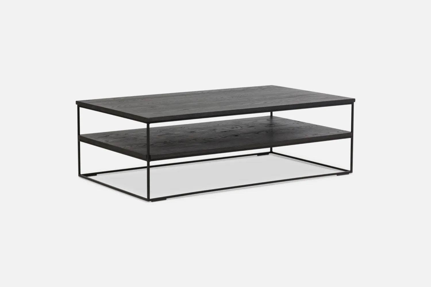 CAMDEN Coffee Table 120 Rectangle in Solid Black Oak with Black Base