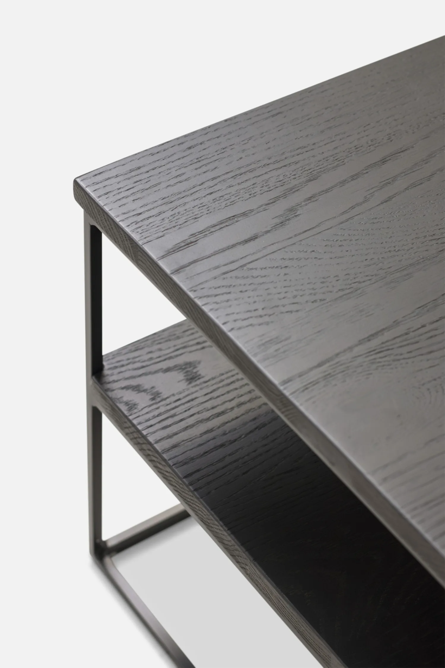 Defined by clean lines and a layered silhouette, CAMDEN brings practical style to modern living spaces. Crafted in richly grained oak and set on a refined metal base, it features a generous lower shelf for display or storage, keeping everyday essentials within easy reach.