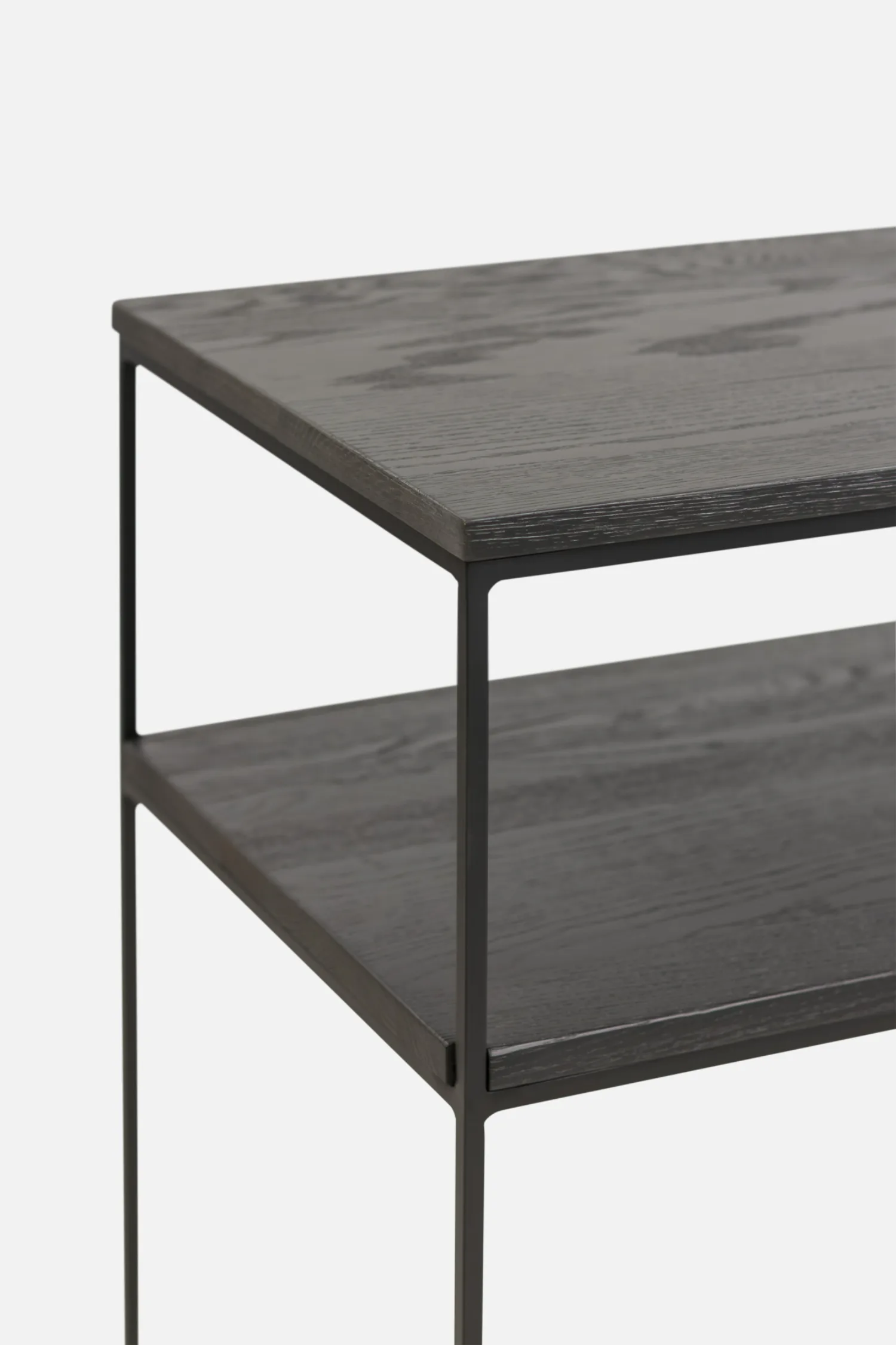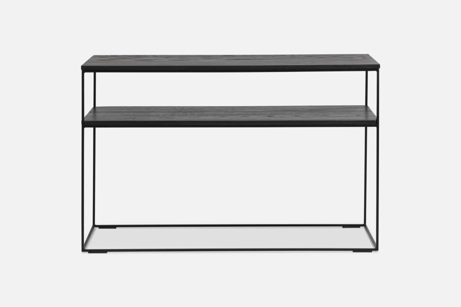 CAMDEN Console with Shelf in Solid Black Oak with Black Frame