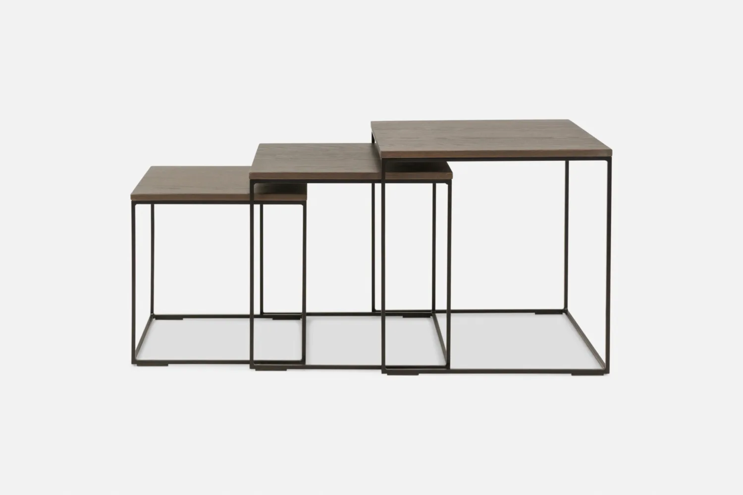 CAMDEN Nesting Table 50 Set of 3 Solid Charcoal Oak with Black Base