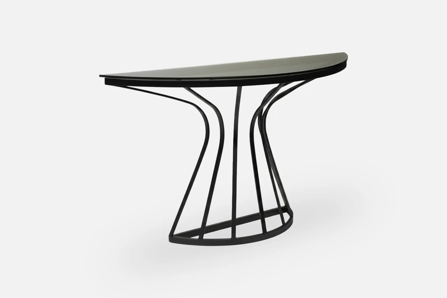 The ARTEMIS console, with its smoked glass top and black stainless steel base, is a glamorous addition to any room.