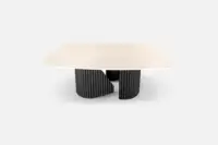 MARSDEN Coffee Table 120 in White-Travertine Sintered Stone with Black Base