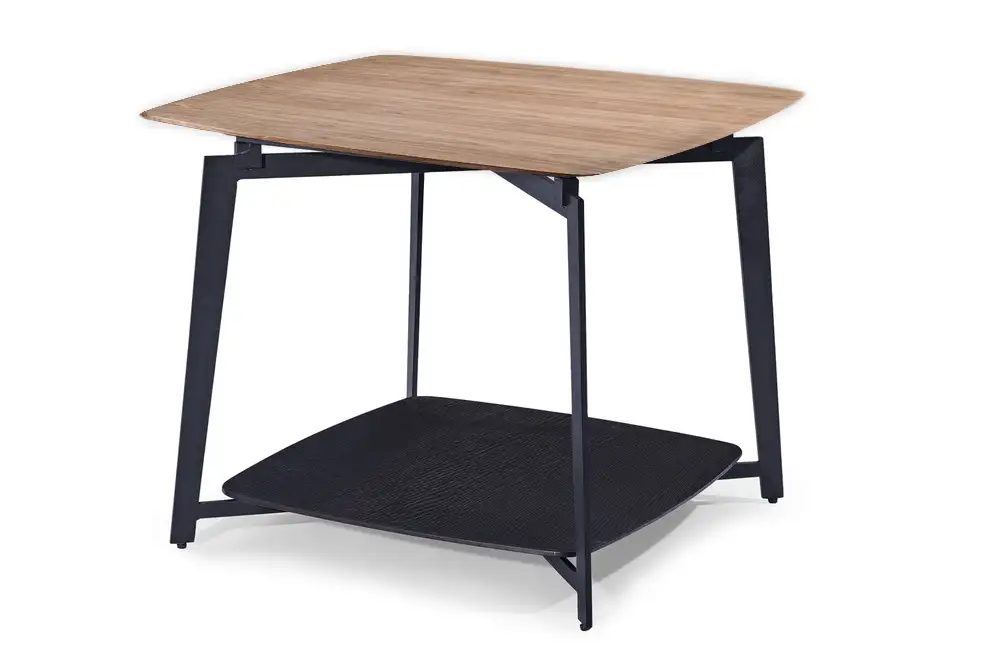 AVETTE Side Table 65 Square in Walnut with Smoked Oak Shelf & Black Powder Coated Legs