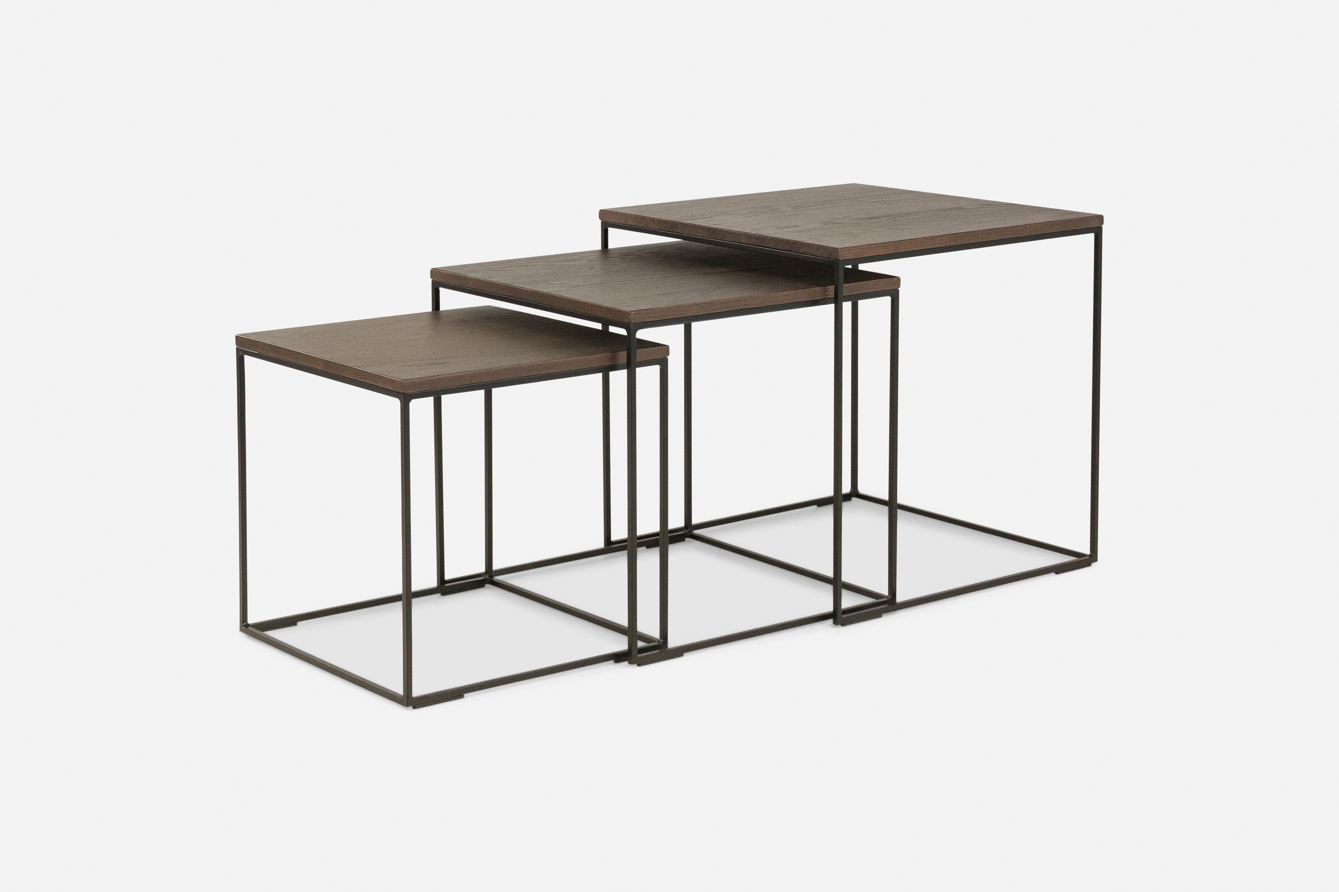 Dark oak & gleaming brass, this minimalist round coffee table makes a bold statement.