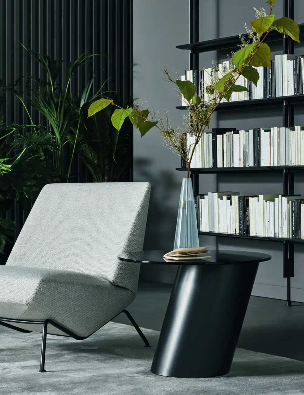 This side table makes a bold statement with its tilted base, defying gravity with a touch of whimsy.