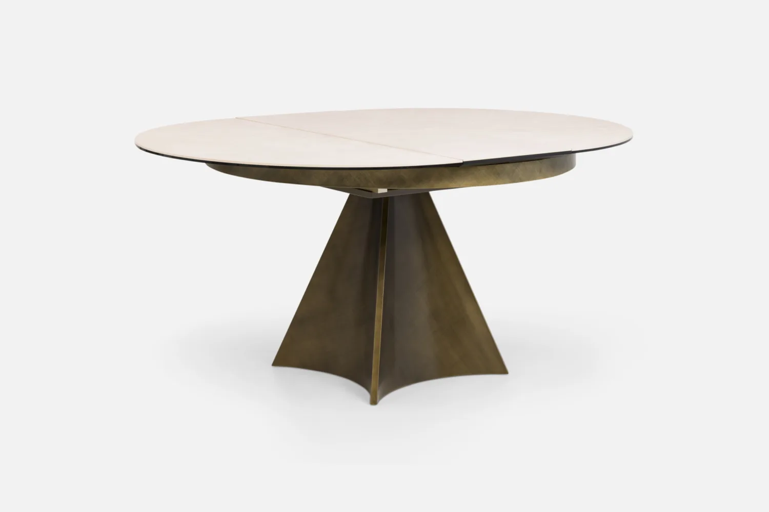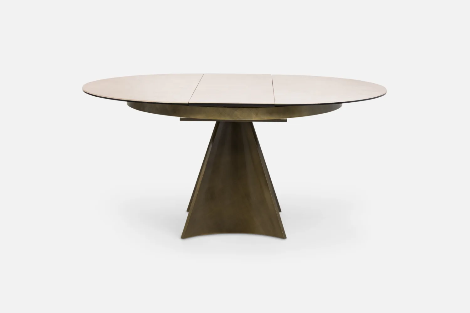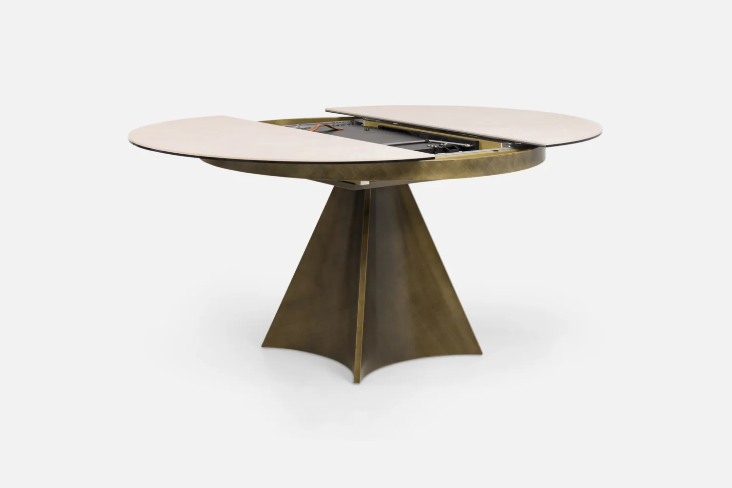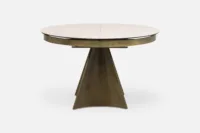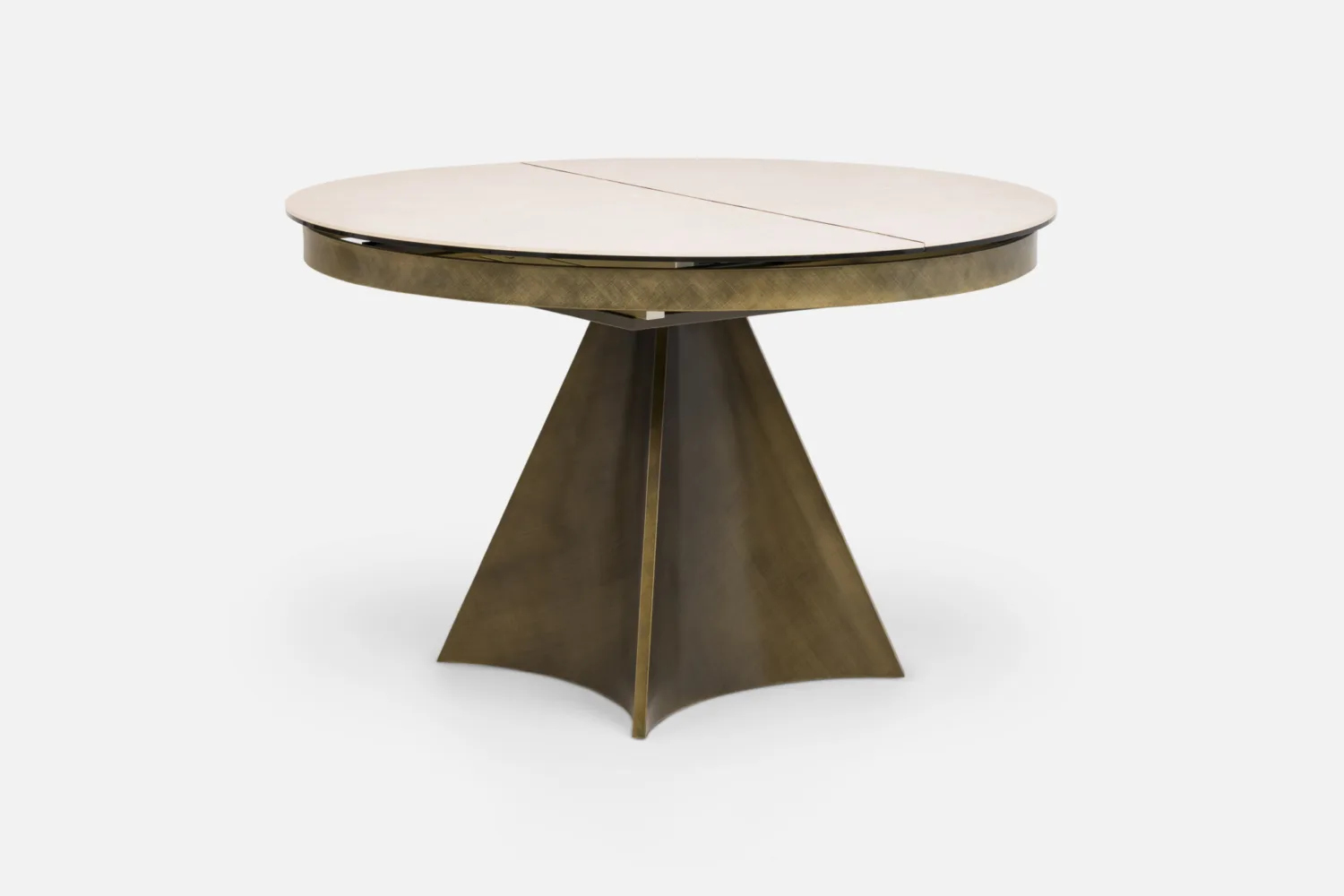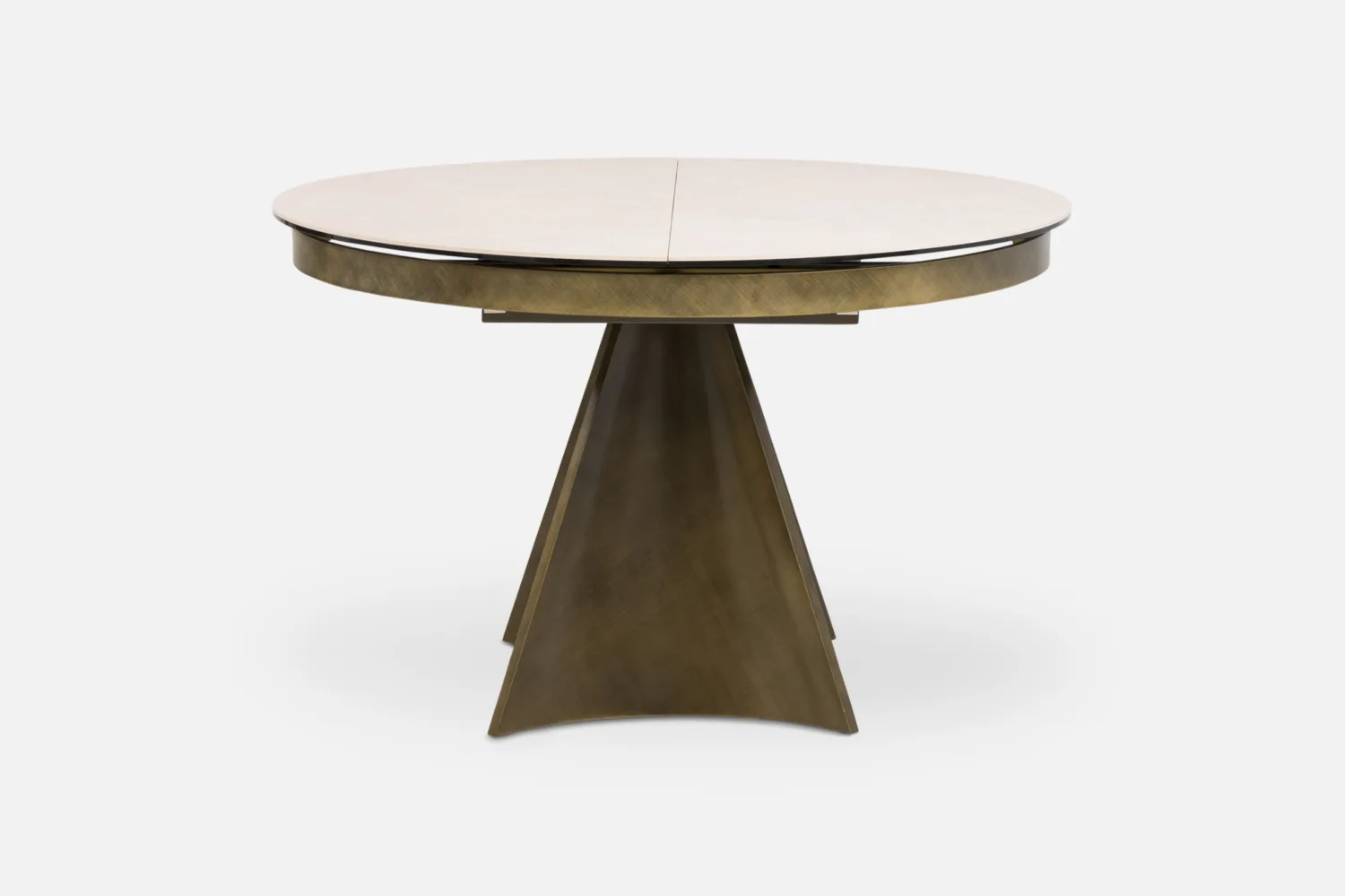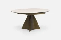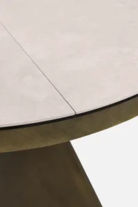 DECARA Dining Table 120-160 Round Extending with Sandstone Ceramic Top & Brushed Bronze Base