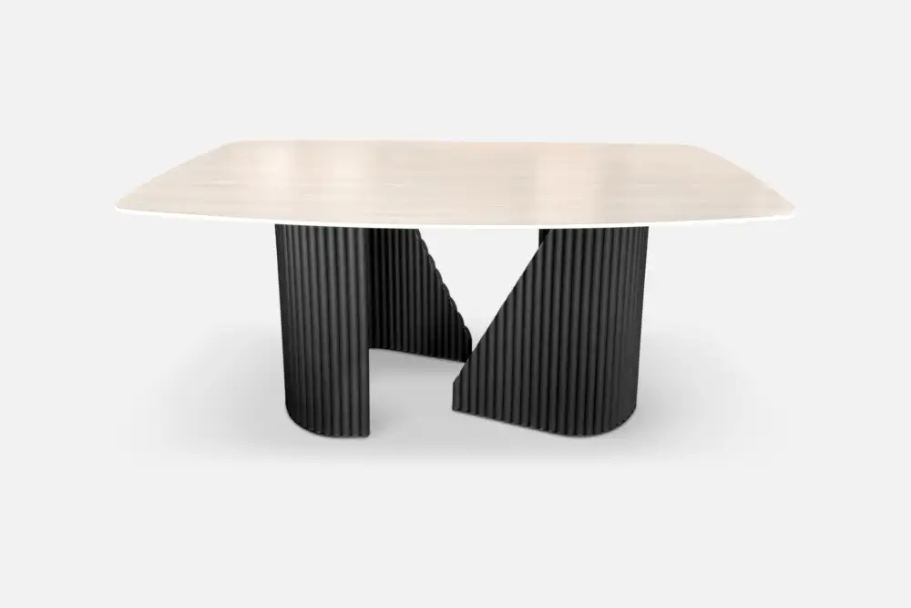 Designed to anchor dining spaces, MARSDEN pairs a softly rounded top with a bold fluted base, creating a sculptural focal point that feels both refined and grounded. Its generous scale invites gathering, while the architectural form brings depth and presence to everyday dining.