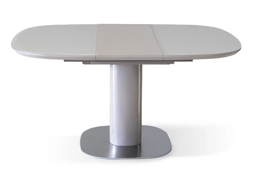 GALLERIA Dining Table 110/150 in Matt Cream Glass with Matt Taupe Stem