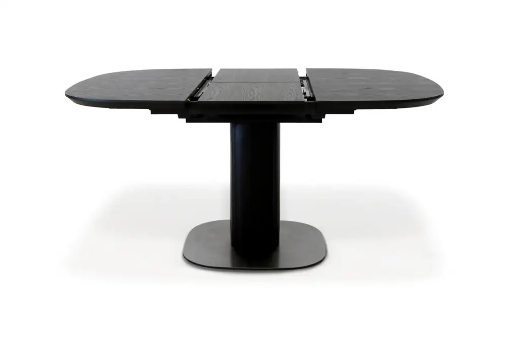 BARILE Dining Table 110-150 in Black Oak with Black Powder Coated Base