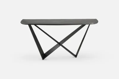 Industrial yet classy, this bar table will fit perfectly in your bar or breakout area at home or office with its cross-black steel legs and angled edge detail.