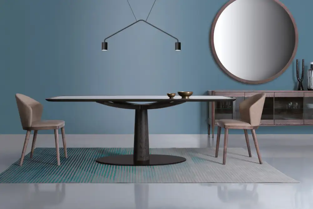 Pairing bold geometry with refined natural materials, DIAMANTE brings sculptural presence to the dining space. Its faceted base and smooth timber top balance strength and elegance, creating a centrepiece made for modern gatherings.