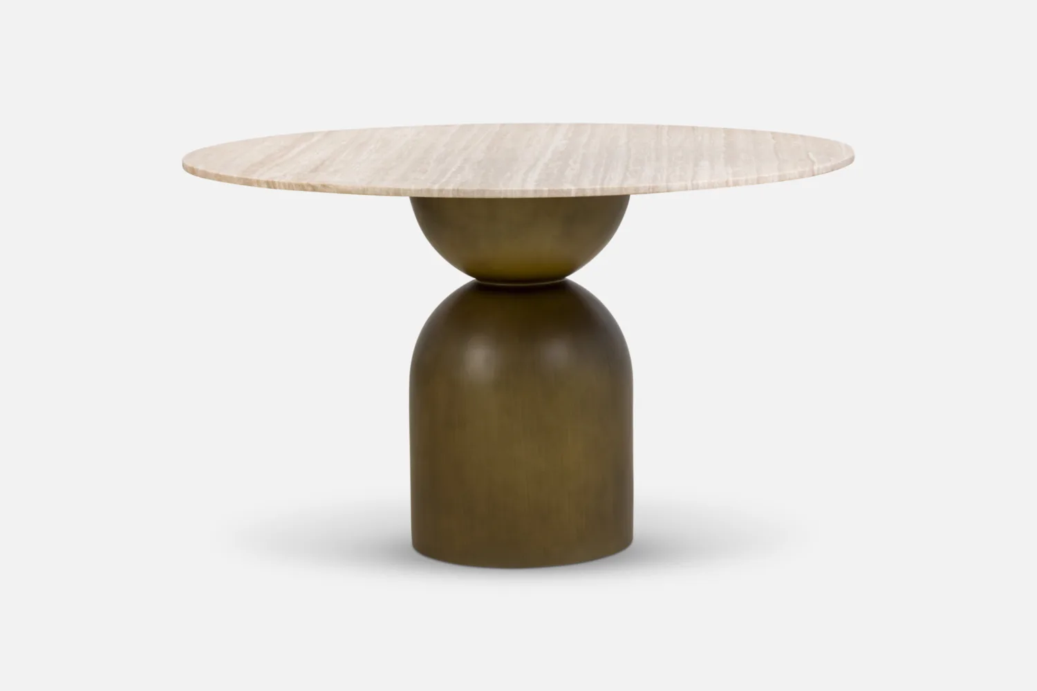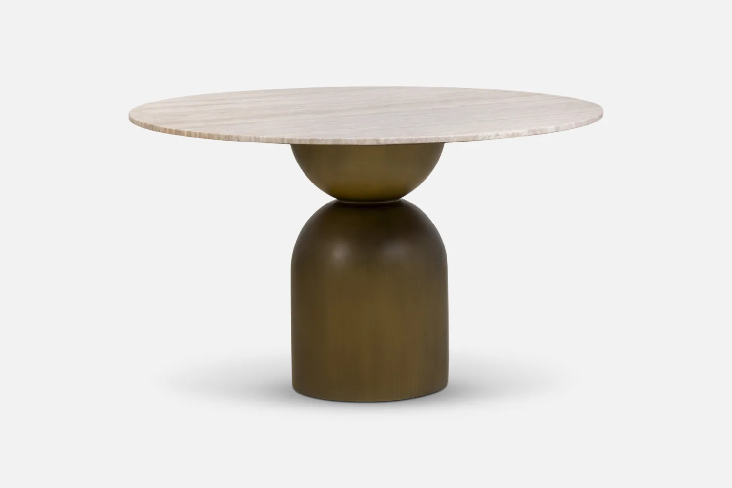 VASO Dining Table 125 Round with Travertine Top & Bronze Base