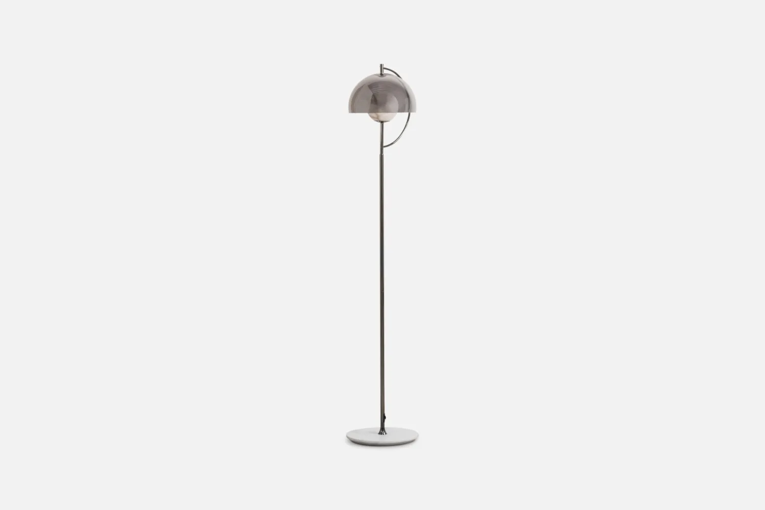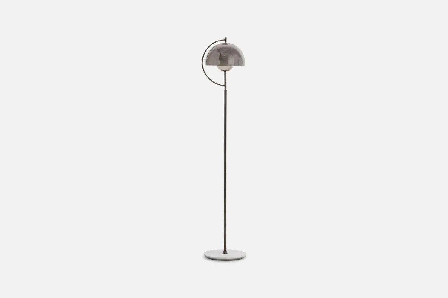 TYRA Lamp Floor 164 in Smoked Glass and Pearl Black with White Marble Base