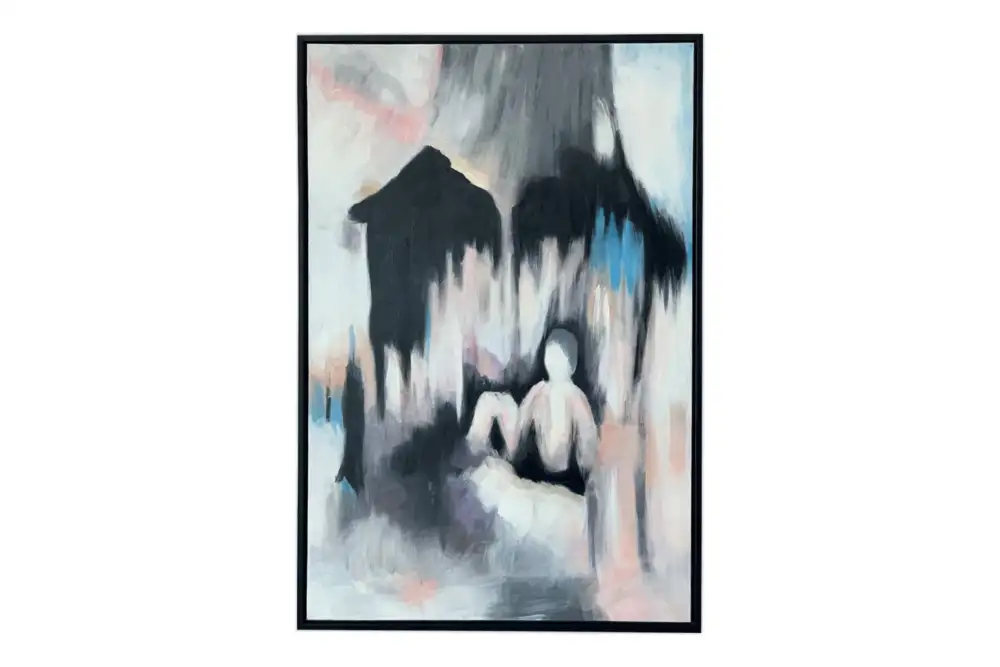 The Hailee painting is full of energy and contrasting colours. Pinks, blues and blacks create a moody yet lively piece for any wall.