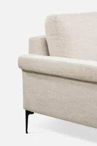 Effortlessly elegant, the ROSEY sofa brings refined comfort to modern living. Upholstered in a soft beige fabric, its clean-lined silhouette is paired with slim metal legs for a look that feels both timeless and contemporary. Deep seat cushions and supportive backrests invite you to relax, while the tailored arms add a subtle architectural touch.