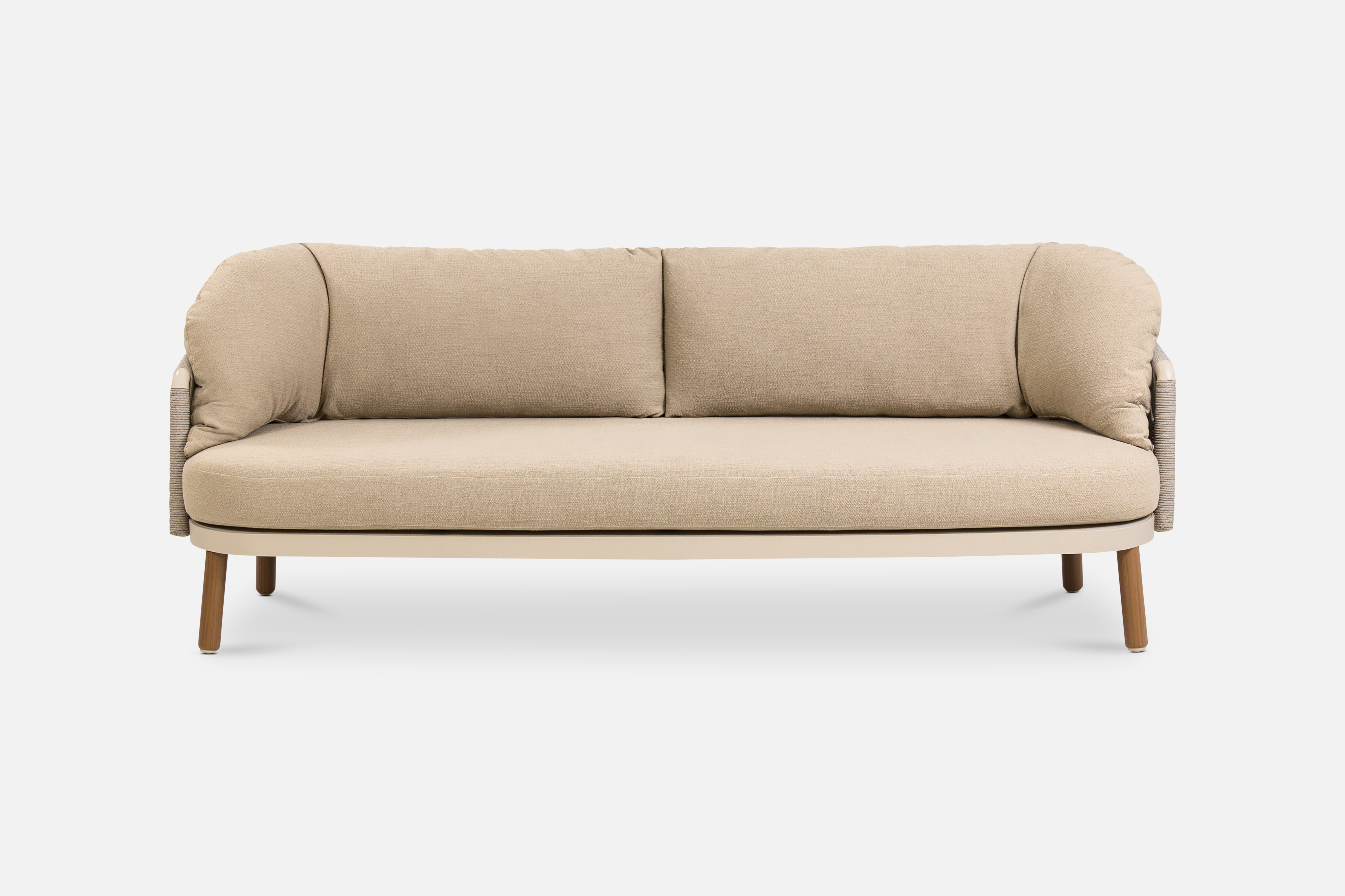The Tablero Suite has a clean, white frame, beautifully contrasting with a bright teal fabrication. Eye catching rope detailing forms part of the frame and adds a textural element. Choose from a 3 seater, 2 seater and armchair to dress your outdoor space perfectly (pieces can be purchased separately.) Whether you have a vast or cosy outdoor space, there is a combination that will work for you.