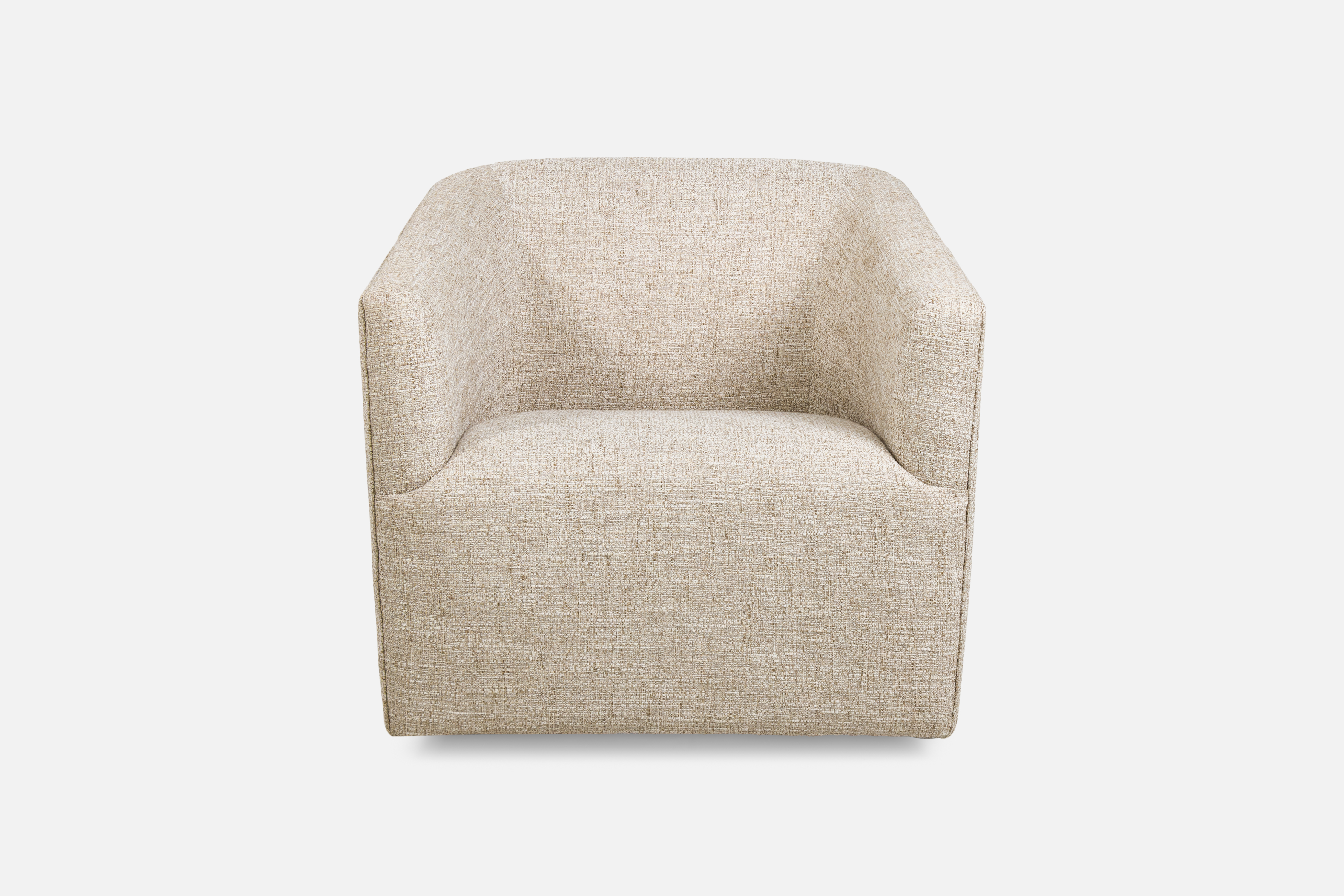 The PAGOSA Swivel Armchair is a modern classic, with its curved back and classic tub shape poised on a gold starbase. Adding a retro feel to any space – available in a variety of different fabrics, leather and colours.